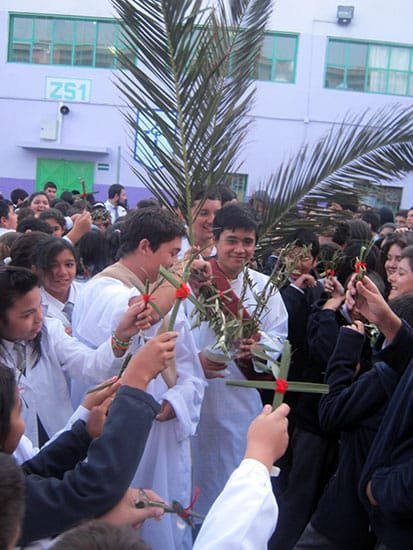 Comenzamos nuestra Semana Santa con la Bendición de Ramos, realizada por los alumnos de 4° medio, personificando a Jesús con sus 12 Apóstoles y bendiciendo los ramos de sus compañeros en el acto matinal del 4° medio “B” dedicado a Domingo de Ramos.