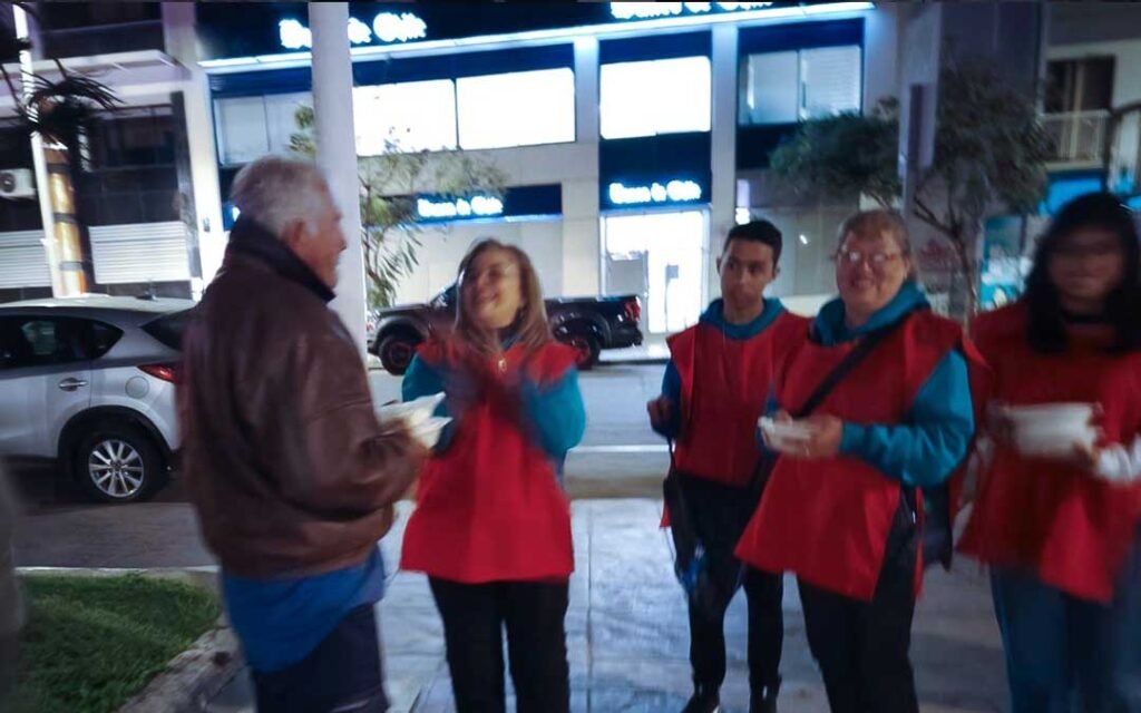 También se realizaron gestos concretos de solidaridad: entrega de víveres a un hogar de adultos mayores y distribución de alimentos a personas en situación de calle.